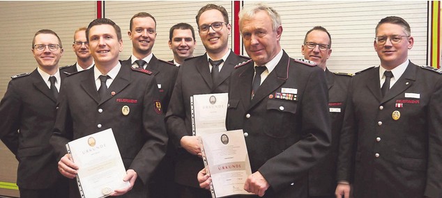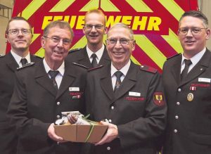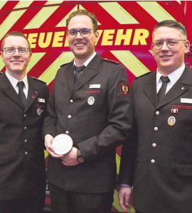 Die Ratsmitglieder Frederik Büscher (CDU) und Andrea Kleene-Erke (SPD) bedankten sich ebenfalls für die geleistete Arbeit der Feuerwehr. Und selbstverständlich standen auch Ehrungen auf der Tagesordnung. Fünfmal den Leistungsnachweis hatte Martin Sigmund absolviert. Das Leistungsabzeichen in Silber für dreimalige Teilnahme erhielten Tizian Kreimer, Niels-Peter Wissmann und Simon Merten. Bereits seit 50 Jahren engagieren sich Gregor Stockmann und Leo Suer in der Feuerwehr und wurden dafür geehrt. Seit zehn Jahren ist Tizian Kreimer in der Feuerwehr aktiv.