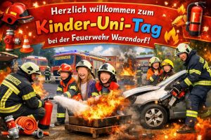 Am vergangenen Samstag durften wir im Rahmen der Uni-Kindertage 16 neugierige Kinder bei uns begrüßen. Ziel des Besuchs war es, technische Besonderheiten der Feuerwehr kennenzulernen und zu entdecken, wie wichtig Chemie, Mathematik und Physik im Feuerwehralltag tatsächlich sind.