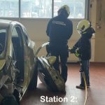 Bei der zweiten Station wurde es spektakulär. Mit Schere und Spreizer wurde ein Auto „zum Cabrio“ umgebaut. Hier konnten die Kinder erleben, wie hydraulische Rettungsgeräte arbeiten und mit welcher Kraft sie eingesetzt werden.
