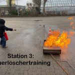 An der dritten Station durften die Kinder selbst aktiv werden und den Umgang mit Feuerlöschern trainieren. Ein gasbefeuertes Feuer musste gezielt bekämpft werden – eine spannende Erfahrung, bei der alle mit großem Engagement dabei waren.