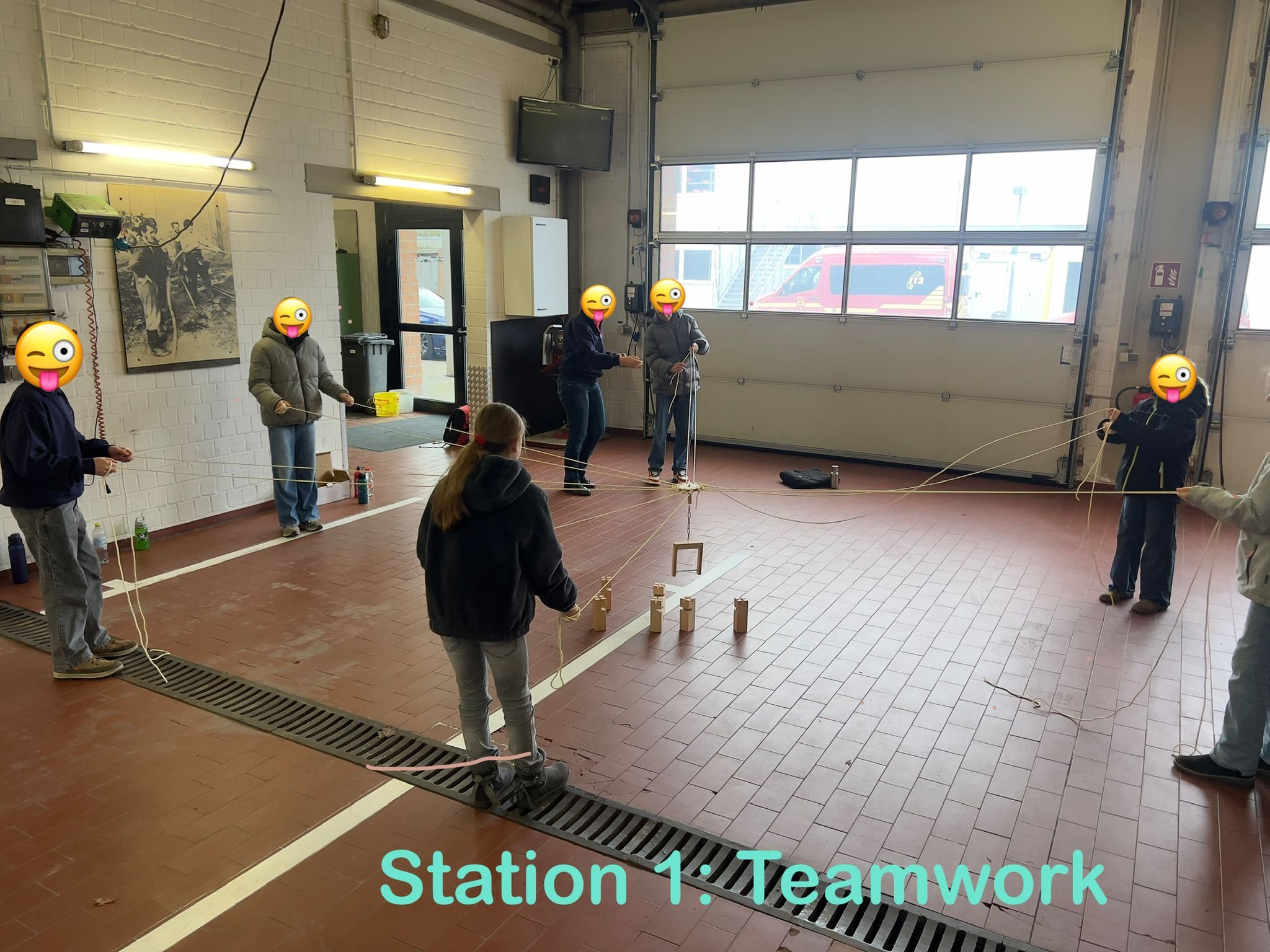 An der ersten Station mussten Klötze gestapelt werden – eine Aufgabe, die nur mit guter Kommunikation und gegenseitiger Rücksichtnahme gelingen konnte. Schnell wurde klar: Feuerwehr funktioniert nur als Team und wenn man ausreichend kommuniziert