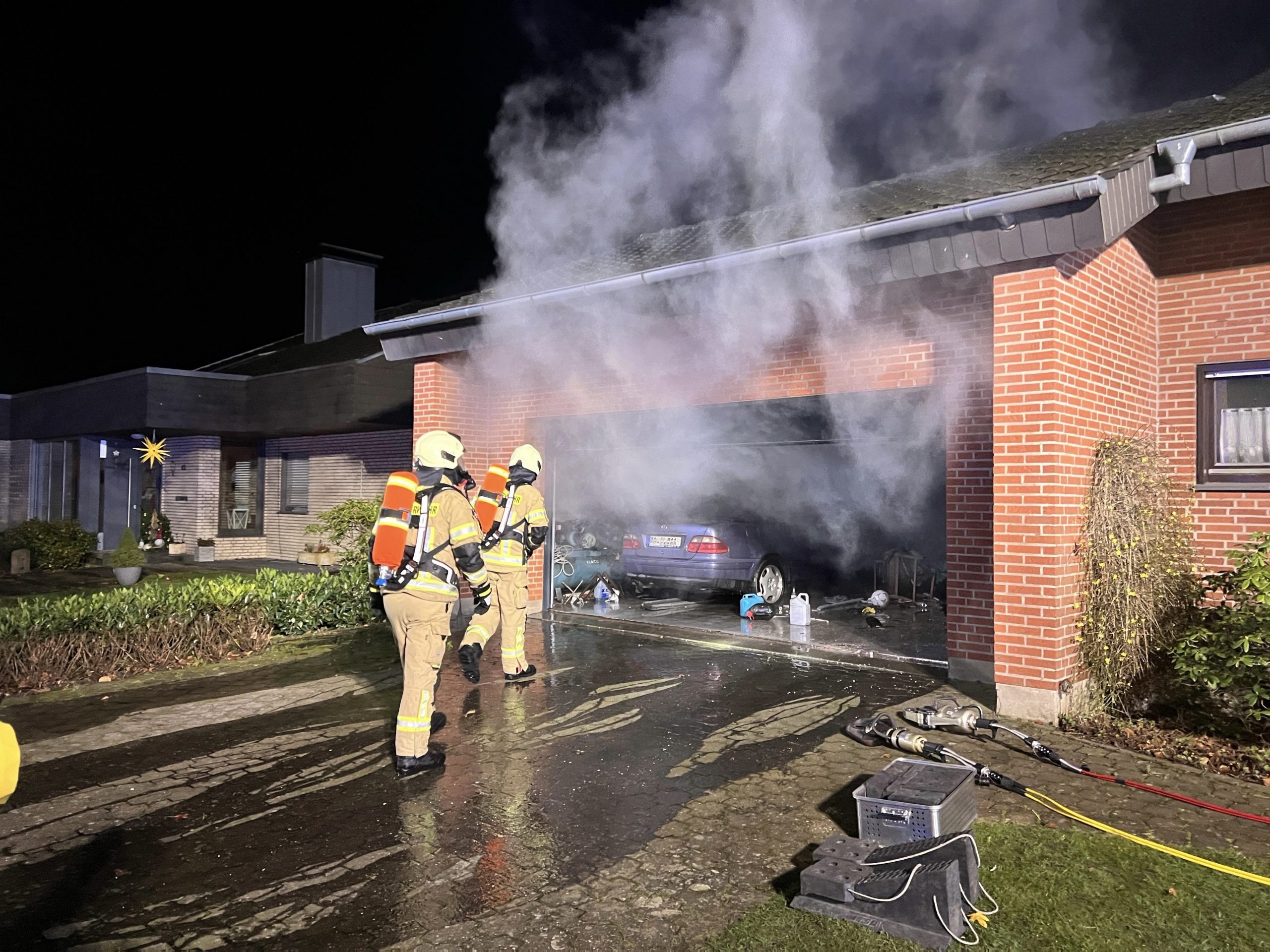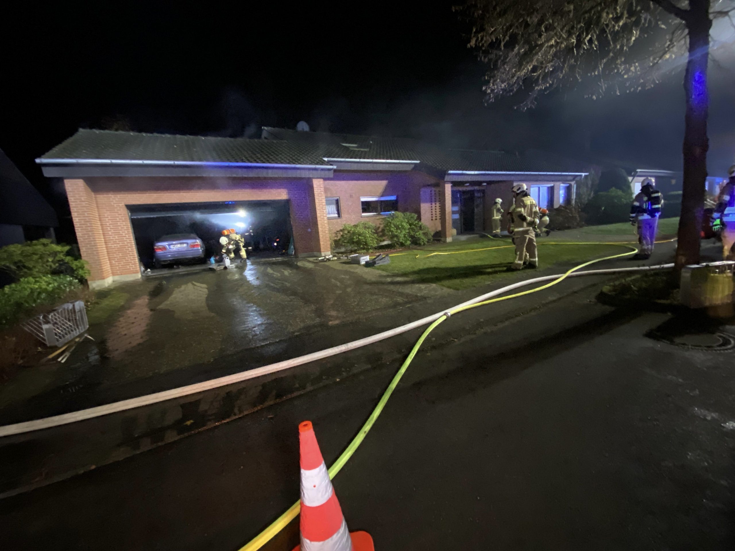 Während des Antretens der Löschzüge Warendorf ertönte plötzlich ein Presslufthorn und Blaulicht zuckte über den Hof. Sekunden später fuhr das neue Wechselladerfahrzeug der Warendorfer Feuerwehr