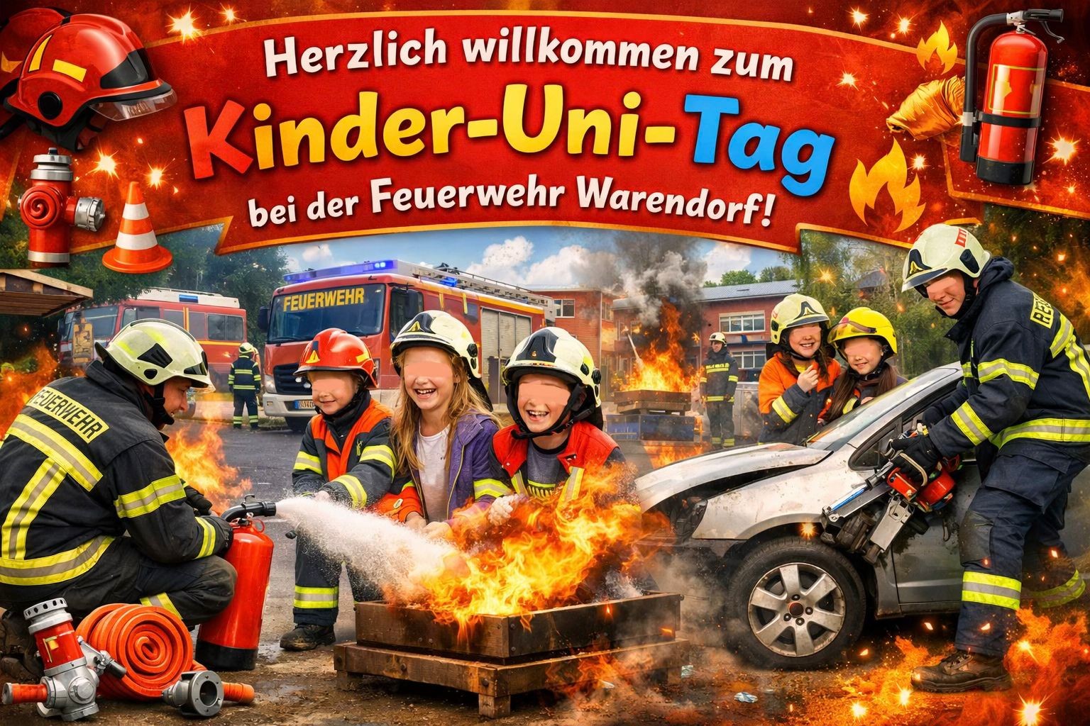 Am vergangenen Samstag durften wir im Rahmen der Uni-Kindertage 16 neugierige Kinder bei uns begrüßen. Ziel des Besuchs war es, technische Besonderheiten der Feuerwehr kennenzulernen und zu entdecken, wie wichtig Chemie, Mathematik und Physik im Feuerwehralltag tatsächlich sind. Theorie trifft Praxis Zu Beginn stand ein etwa halbstündiger Vortrag